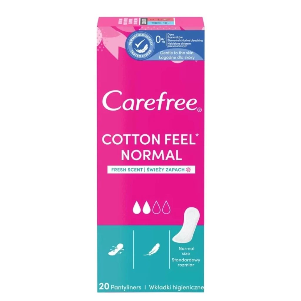 Cu Carefree absorbante Cotton Feel Fresh N20 continuați să vă simțiți curat și proaspăt în fiecare zi! Suprafața respirabilă a absorbantei permite pielii să respire. Absoarbe rapid umezeala pentru a ajuta la prevenirea mirosurilor neplăcute și pentru a vă menține proaspăt. Testat de dermatolog.