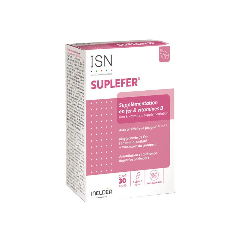 Bogat în Fier și Vitaminele B2, B3, B5, B6, B9, B12, contribuie la reducerea oboselii. Vitamina B2 contribuie la metabolizarea fierului. Fierul bisglycinat, forma amino-chelată a fierului, permite o asimilare mai bună decât alte forme. Garantează o toleranță digestivă bună (nu provoacă constipație).