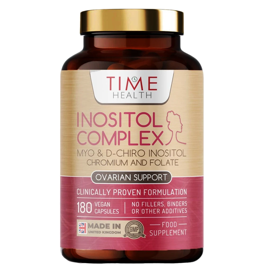 SUSȚINE FEMEILE CU Sindromul ovarelor polichistice. Time Health Inositol Complex este special conceput pentru femeile care suferă de sindromul ovarelor polichistice. Conținând un amestec atent selecționat de mio-inozitol, d-chiro-inozitol, folat și crom în cantități optime, Inositol Complex ajută la menținerea echilibrului hormonal sănătos, a funcției ovariene și la normalizarea parametrilor cheie.