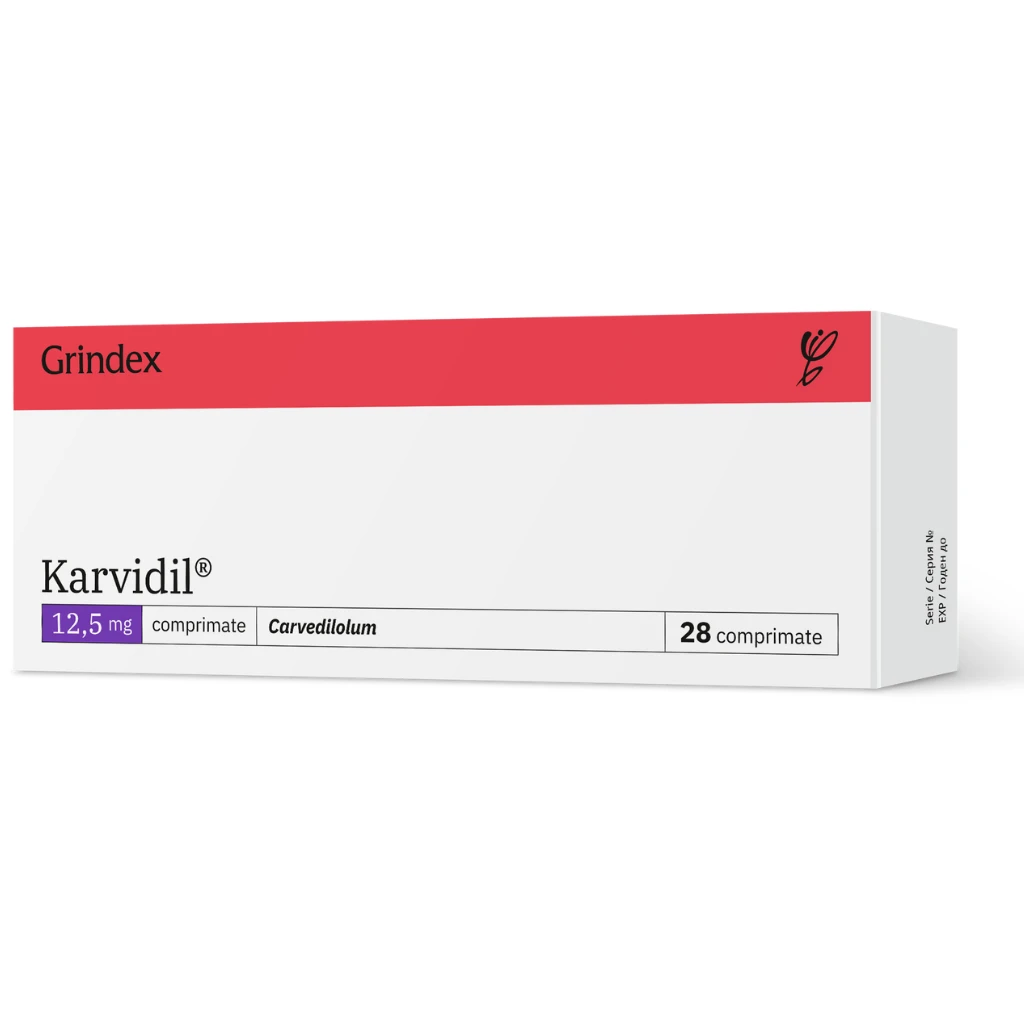 KARVIDIL conţine ca substanţă activă carvedilol, care este un blocant al betaadrenoreceptorilor. Medicamentul posedă acţiune multilaterală, care îi lărgeşte