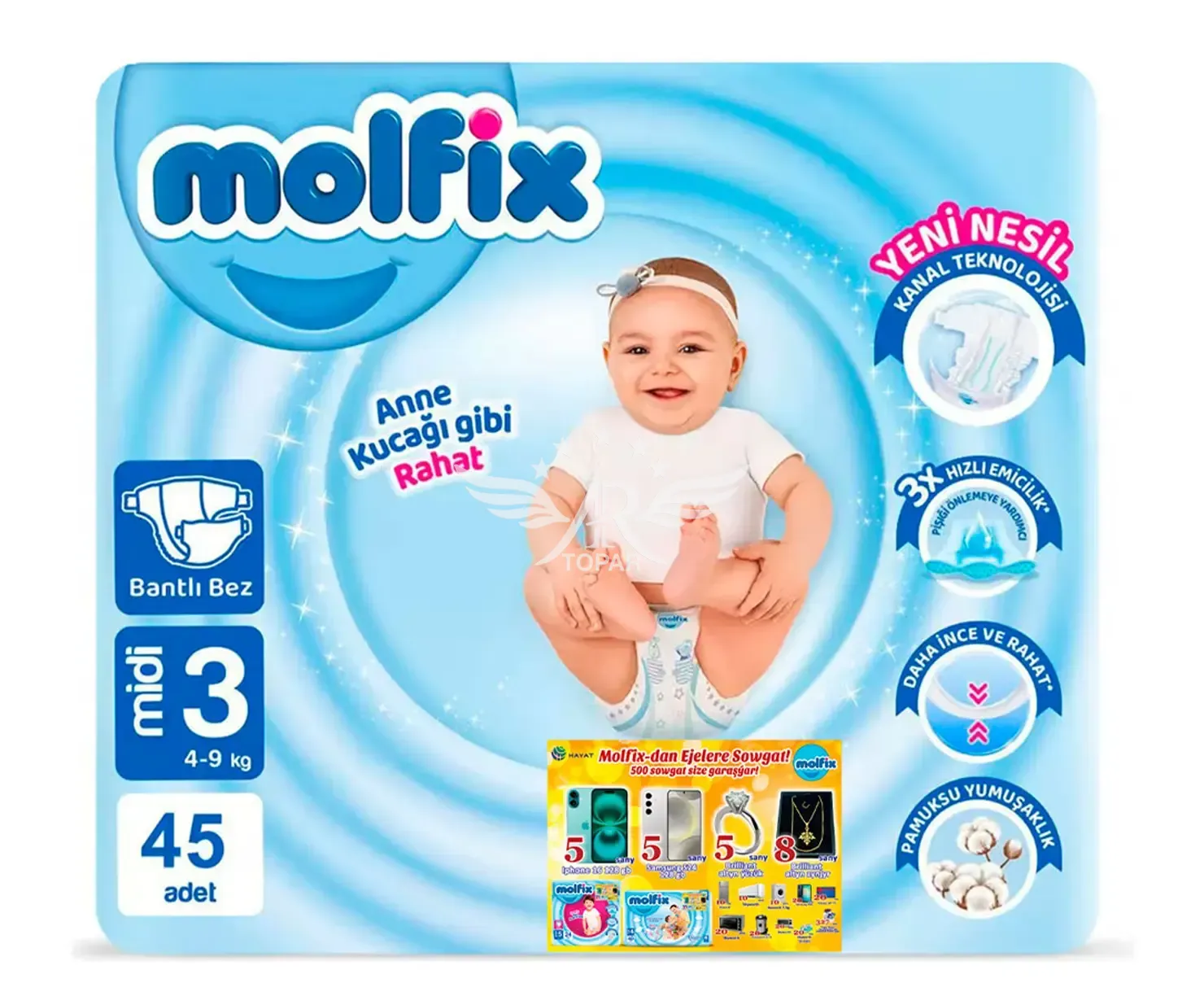 Oferă-i micuțului tău confort și senzație de uscăciune cu scutecele Molfix Midi. Special concepute pentru copiii activi cu greutatea cuprinsă între 4 și 9 kg, aceste scutece combină un sistem inovator de absorbție cu o moliciune incredibilă. Datorită tehnologiei Anti-Sagging, scutecul nu se lasă și nu se strânge între picioare, permițându-i bebelușului libertate completă de mișcare.