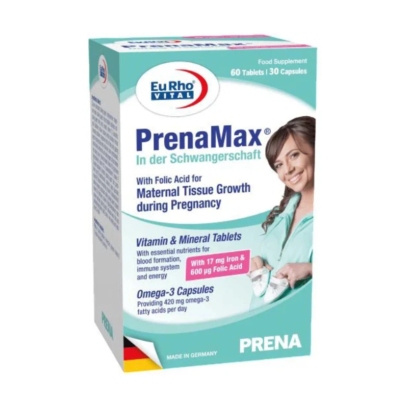Cu 20 de vitamine esențiale, minerale, oligoelemente plus carotenoizi și mixtură naturală inositol (pastile) și ulei de pește omega-3 de înaltă calitate, plus vitamina E (capsule) pentru a asigura aportul zilnic de nutrienți importanți în timpul sarcinii.
