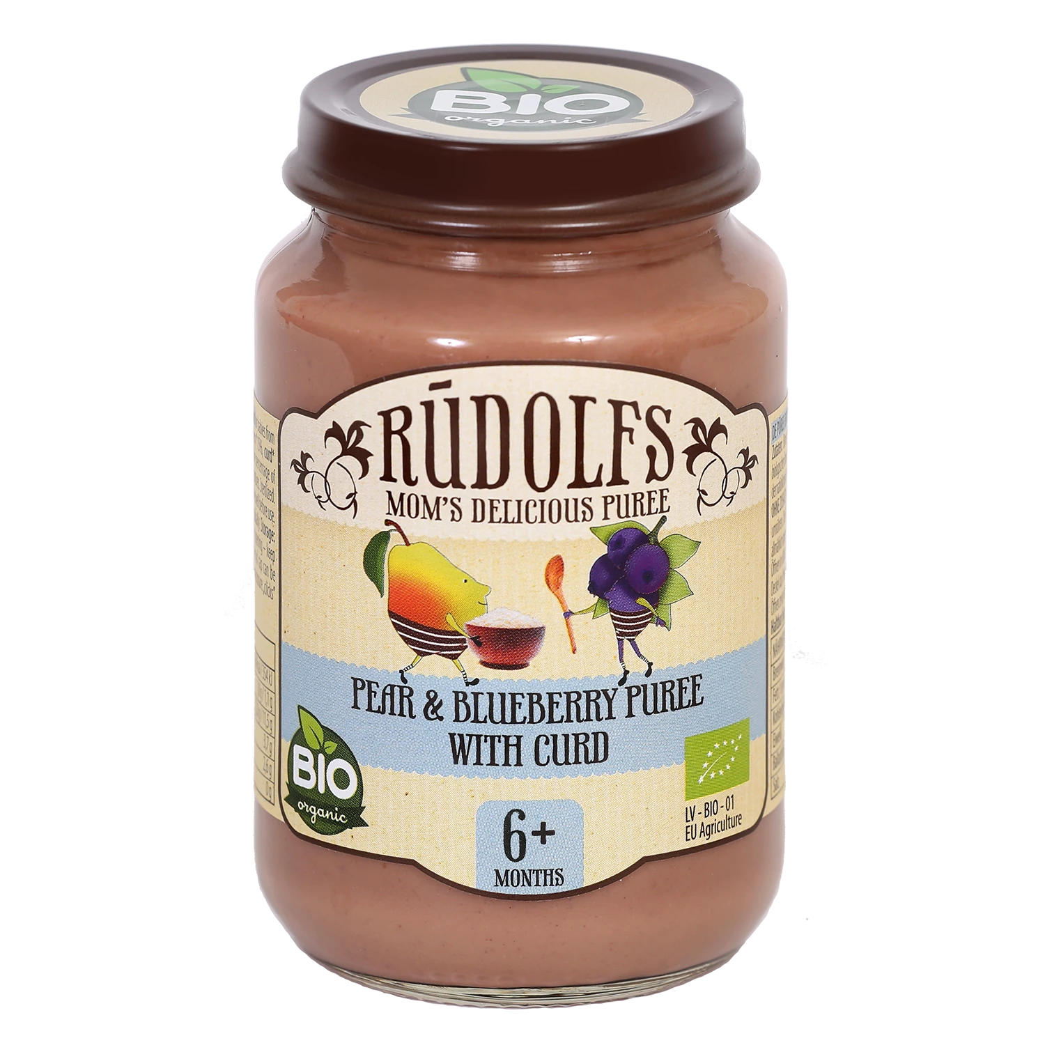 Rudolfs Organic Piure Pere și afine cu branza 190g (6+)