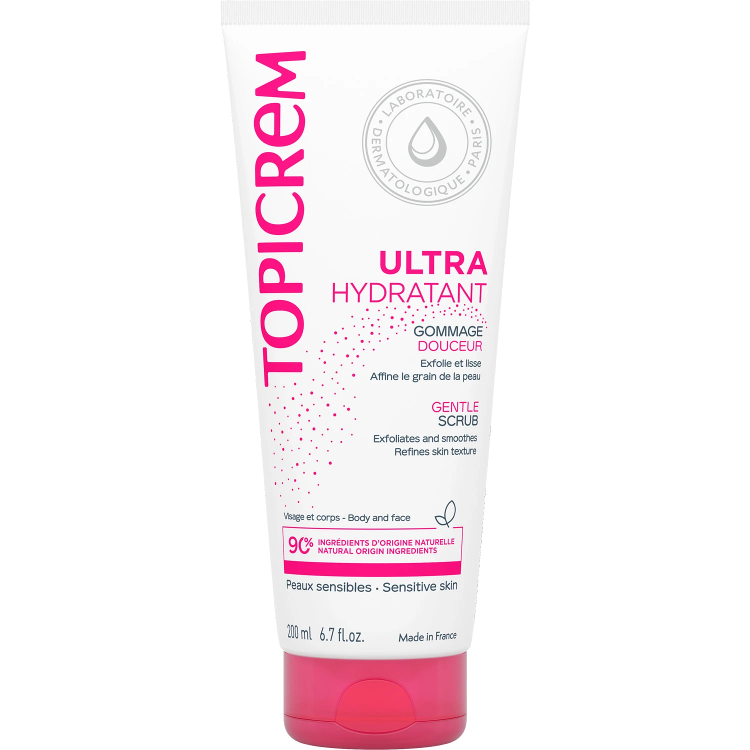 Topicrem gel - curăță și exfoliază, îndepărtează celulele moarte, netezește și redefinește textura pielii, curăță delicat pielea. Skin renewal effect. Testat dermatologic. Fără săpun, parabeni. Formulă fără alergeni. Parfum pudrat cu note florale. Aplicati 1-2 ori pe săptămână pe pielea umedă prin masaj apoi clătiți. Evitați contatul cu ochii, în caz de atingere accidentală clătiti abundant. Nerecomandat copiilor.